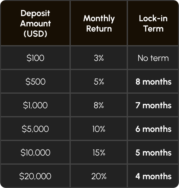 With 6 deposit tiers offering the following